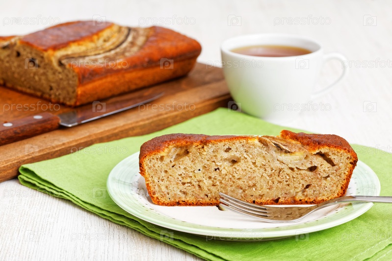 Кусок домашнего бананового хлеба. Мелкий фокус