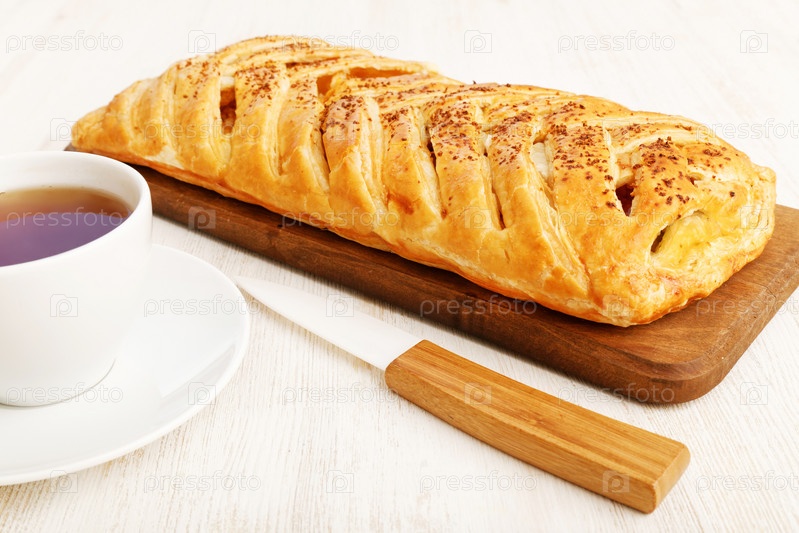 Домашний шоколадный чизкейк с ломтиками миндаля на белом деревянном столе. Вид сверху