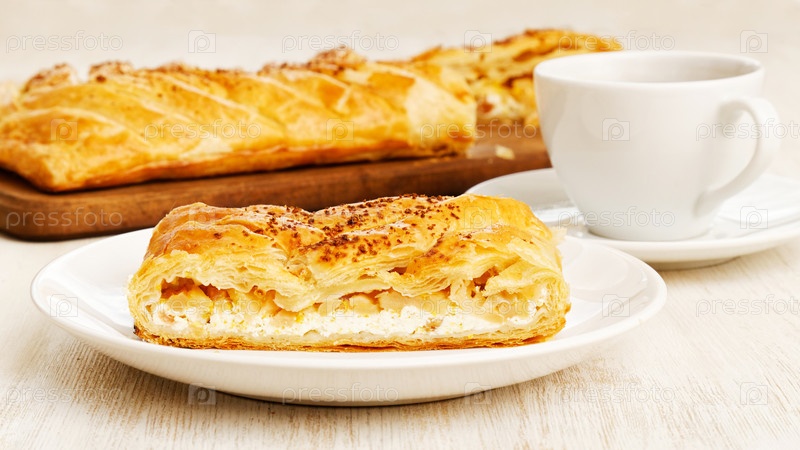 Домашний шоколадный чизкейк с ломтиками миндаля на белом деревянном столе. Вид сверху