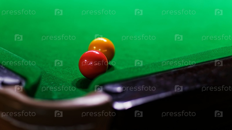 Два бильярдных шара на зеленом бильярдном столе