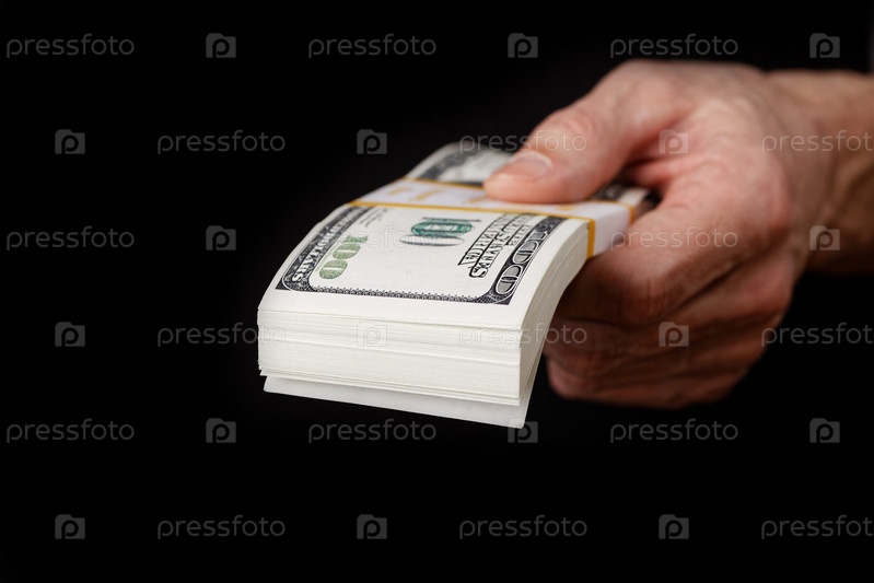 Крупный план мужской руки, дающей пачку долларов