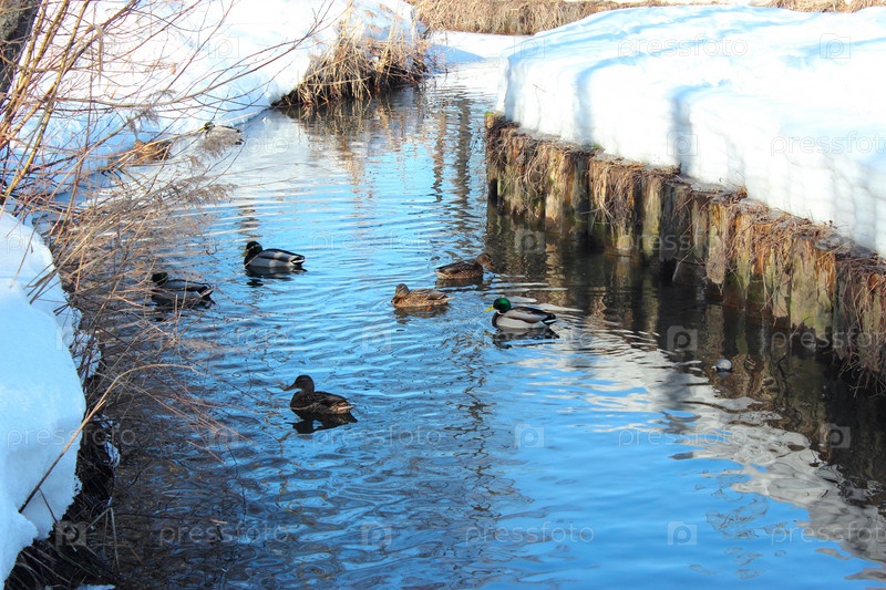 Утки на зимнем ручье