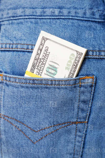 Пачка долларов торчит из кармана джинсов
