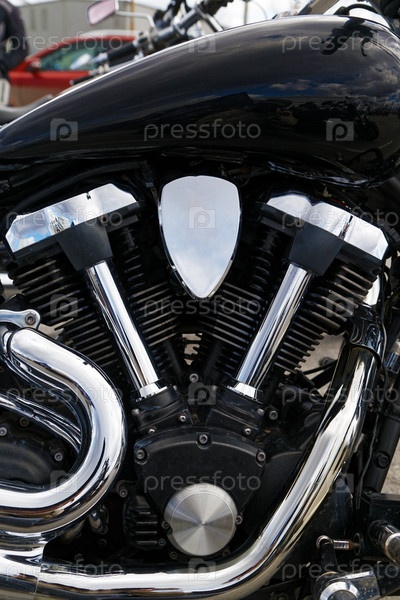 Большой план V-образного двигателя мотоцикла