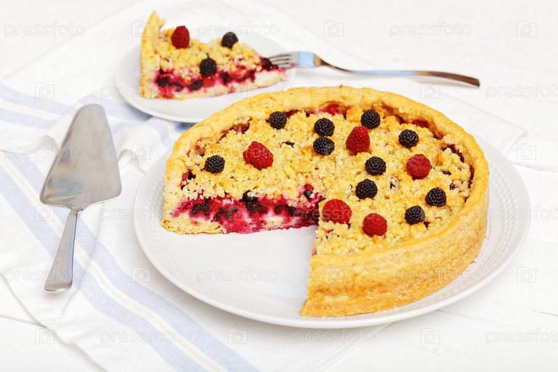 Домашний малиновый тарт с творожным кремом и штрейзелем
