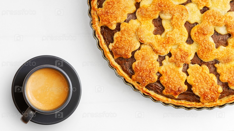 Домашний шоколадный чизкейк с ломтиками миндаля на белом деревянном столе. Вид сверху