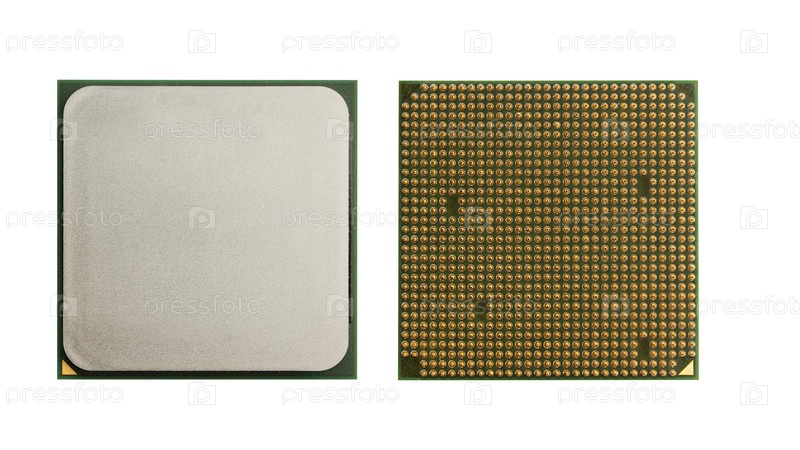 ЦП - центральный процессор компьютера, изолированные на белом фоне. Вид сверху и снизу