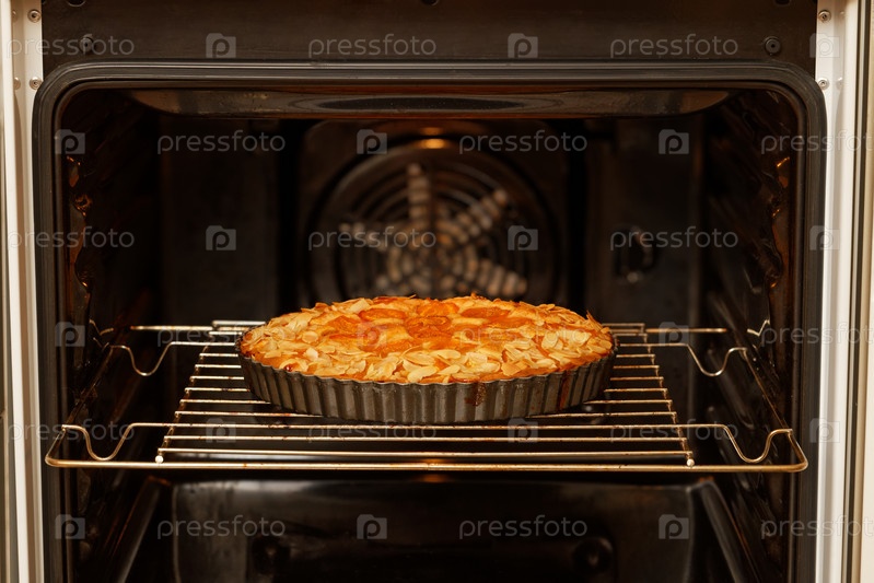 Крупным планом домашний пирог с абрикосами, запеченный в домашней печи. Мелкий фокус