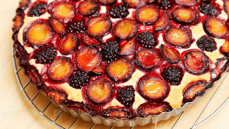 Домашний ягодный пирог со сливами и ежевикой