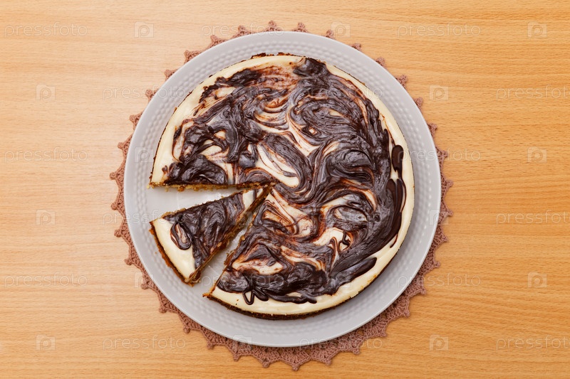 Домашний чизкейк с шоколадом и изюмом на деревянном столе