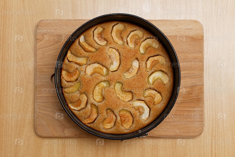 Домашний яблочный пирог на деревянном столе. Вид сверху
