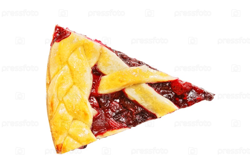 Кусок домашнего ягодного пирога с вишней и малиной