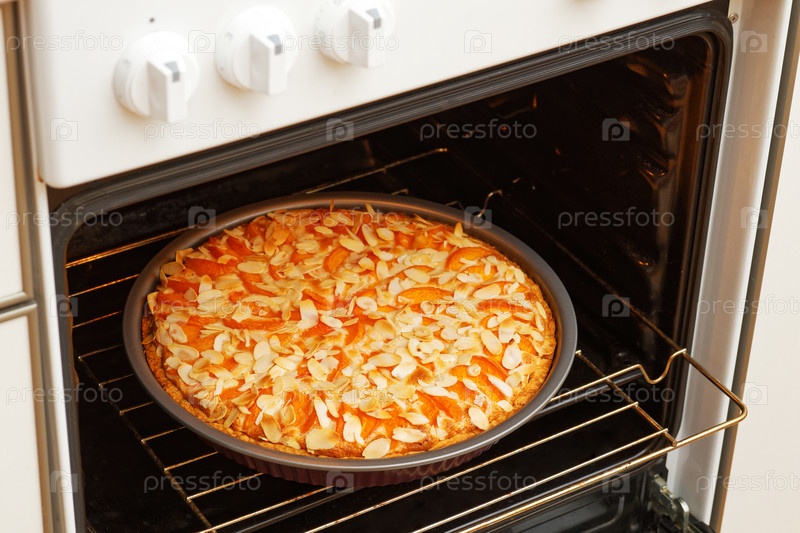 Абрикосовый пирог, украшенный миндальными лепестками, запеченный в домашней печи