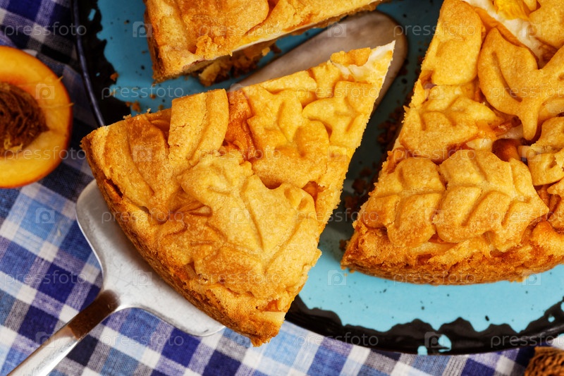 Крупным планом домашний пирог с нектаринами на кухонном столе. Вид сверху