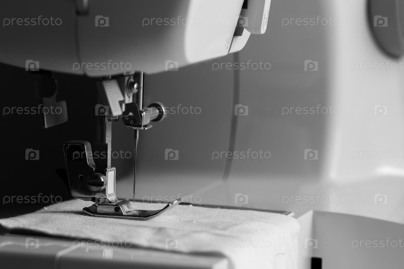 Швейная машина в черно-белом режиме, медленная мода и концепция домашнего шитья