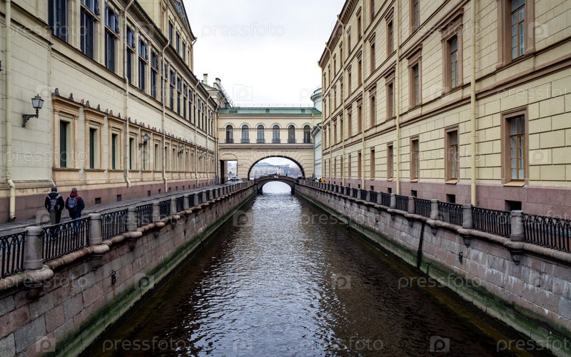 Вид на Эрмитажный мост с первого зимнего моста по зимнему каналу