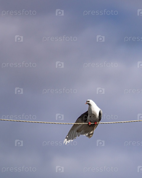 Голубь на проводе закрывает крылом небо