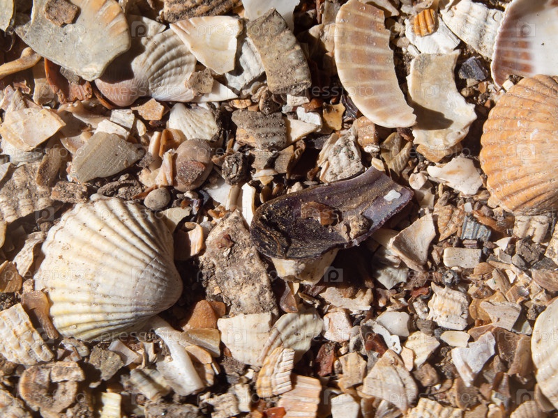 Естественная текстура целых и сломанных ракушек для фона. Естественный фон, текстура с округлыми рельефными морскими раковинами