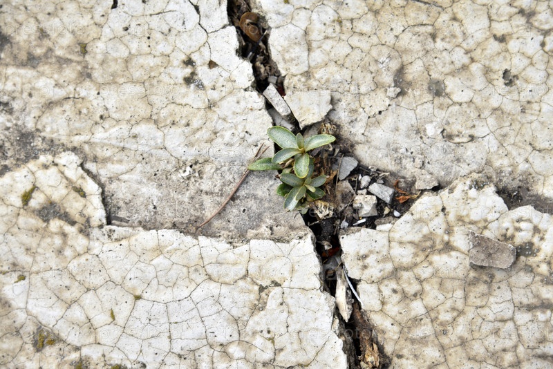 Росток растения, пробивший бетон. Сила воли растения