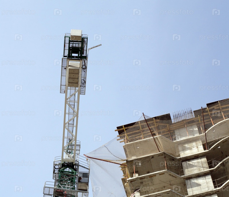 Дом развивается с краном днем