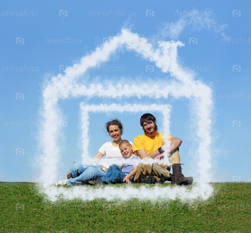 Семья с сыном в доме своей мечты,коллаж