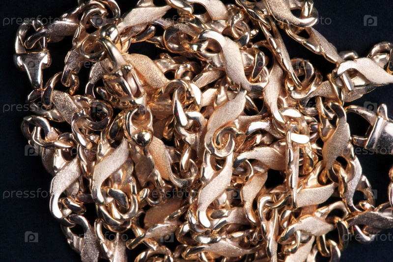 Желтая золотая цепочка на черной ткани