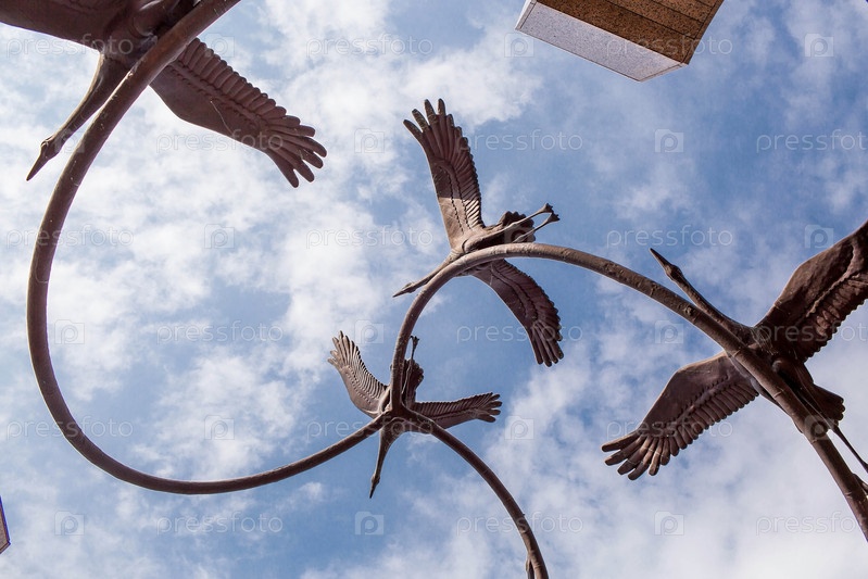 Мемориал журавлей и вечный огонь на Аллее славы. Памятник летчикам, погибшим в боях за небо над Москвой. г. Видное Ленинского района Московской области 2023 г