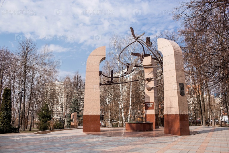 Мемориал журавлей и вечный огонь на Аллее славы. Памятник летчикам, погибшим в боях за небо над Москвой. г. Видное Ленинского района Московской области 2023 г