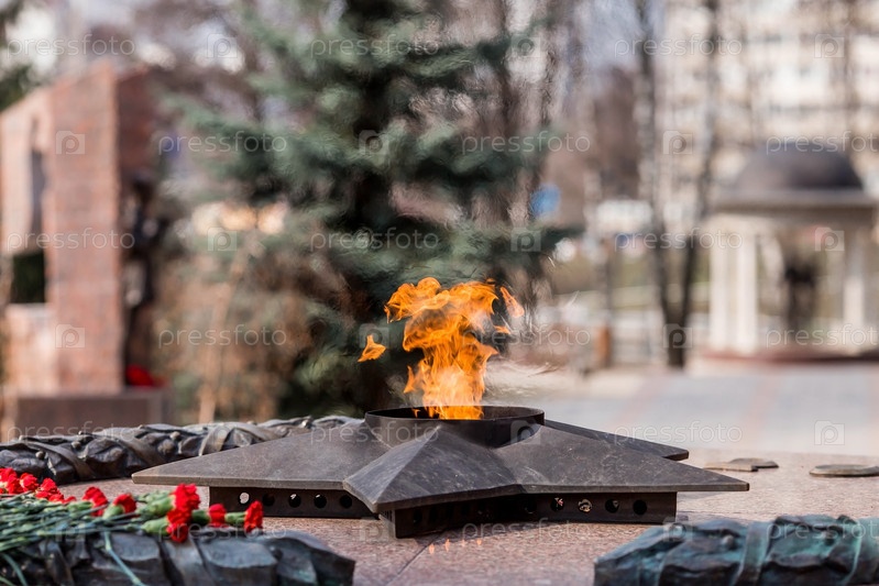 Вечный огонь на Аллее славы с красными гвоздиками. Памятник «Журавлям» в память о летчиках, погибших в боях за небо над Москвой. г. Видное Ленинского района Московской области 2023 г