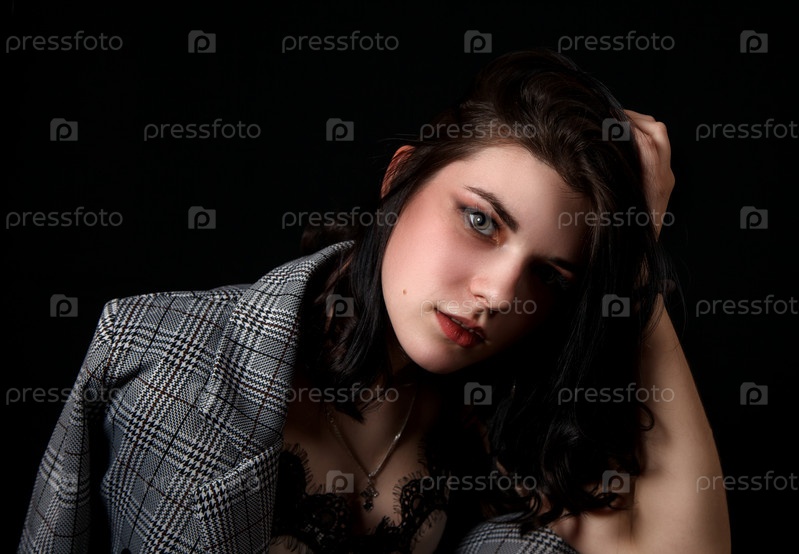 Красивая молодая девушка на черном фоне