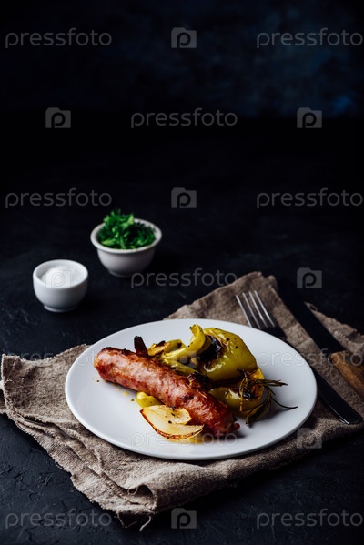 Свиная колбаса с зеленым перцем, луком и зеленью
