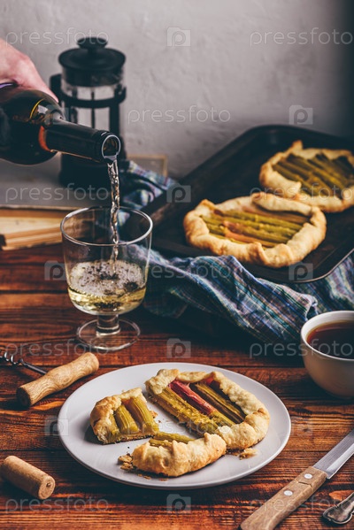 Галетта из ревеня на белой тарелке