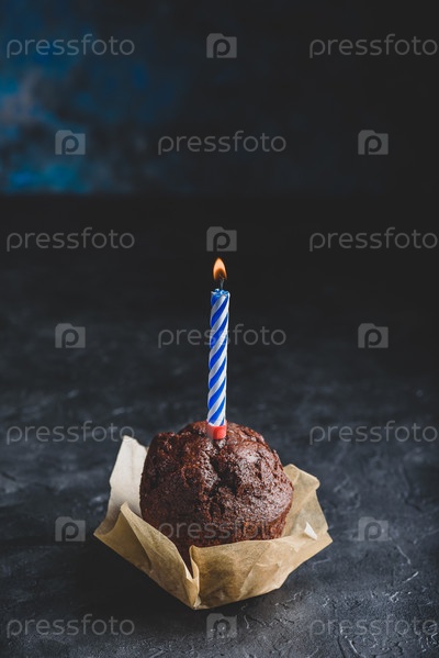 Шоколадный кекс со свечой на день рождения