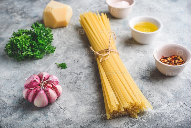 Сырье для лингвини с оливковым маслом и чесноком