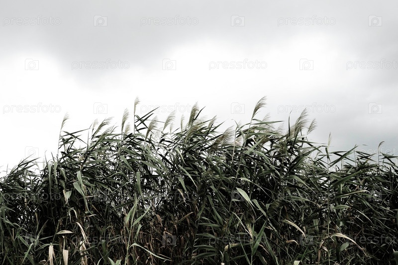 Обыкновенный тростник или южный тростник, Phragmites australis, высокая многолетняя трава рода Тростники. Флора эстуария. Влаголюбивое растение. Почвы с близким стоянием грунтовых вод. Бурная погода