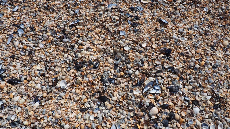 Раковины брюхоногих двустворчатых моллюсков. Азовское и Черное моря, Голубицкая. Ракушки на берегу. Cerastoderma lamarcki, Hypanis colorata, Anadara inaequivalvis, Mytilus galloprovincialis