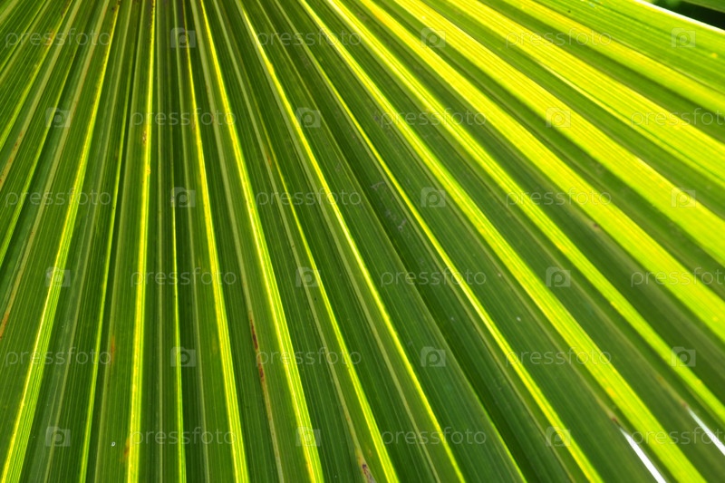 Текстура пальмовых листьев с тенью и светом. Пальмовые листья ярко-зеленого и желтого цветов. Тропический красивый фон. Летний пляжный туризм