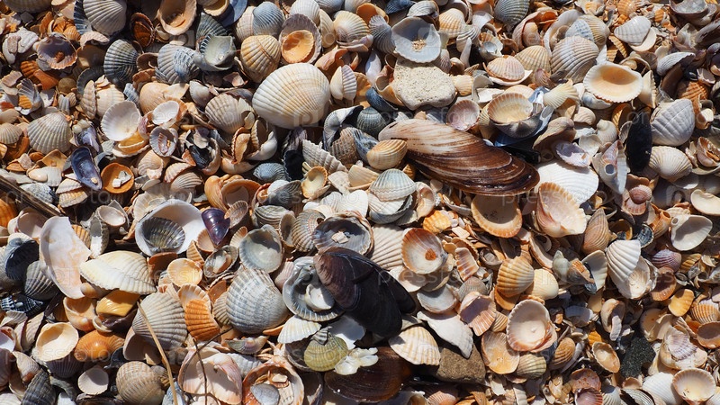 Раковины брюхоногих двустворчатых моллюсков. Азовское и Черное моря, Голубицкая. Ракушки на берегу. Cerastoderma lamarcki, Hypanis colorata, Anadara inaequivalvis, Mytilus galloprovincialis