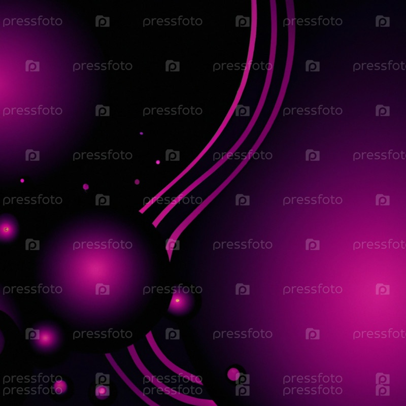 Объемные фиолетовые пузыри на черном фоне, черно-фиолетовый градиент с пятнами, тенями и изогнутыми линиями. Таинственный фон или шаблон для визитной карточки или пластиковой карты. Космос или макрокосм