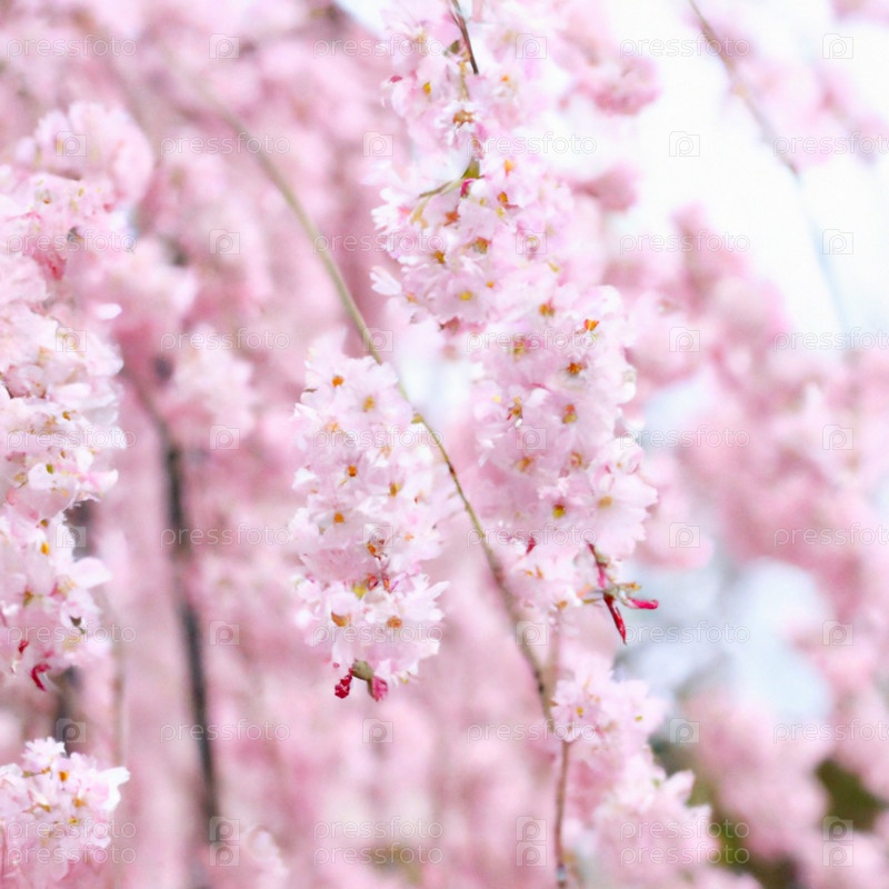 Сакура, виды и сорта деревьев подсемейства Plum Prunoideae, черешня зубчатая Prunus serrulata. Декоративные растения. Прекрасные розовые цветы распускаются весной. Эфемерность жизни, буддизм