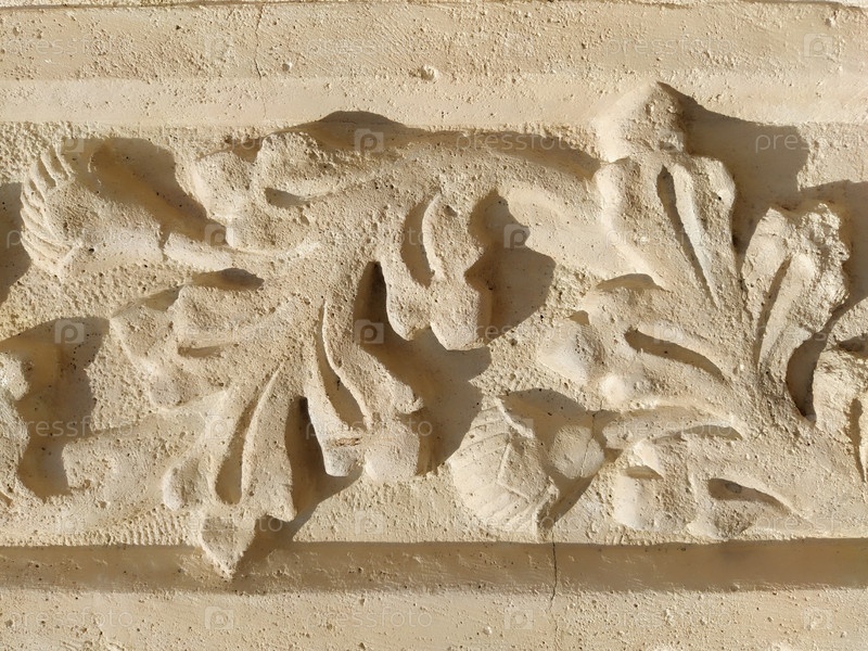 Орнамент, скульптурный рисунок из структурированных растительных элементов. Отделка стены лепниной в Дубровнике, Хорватия. Полоса трилистников. Акант — травяная растительность, листья — элементы лепнины