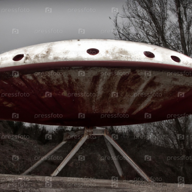Неопознанный летающий объект НЛО. визуально наблюдаемый движущийся или неподвижный, летящий или кажущийся летающим объект в атмосфере или космическом пространстве, или оптическое явление. Старый ржавый НЛО