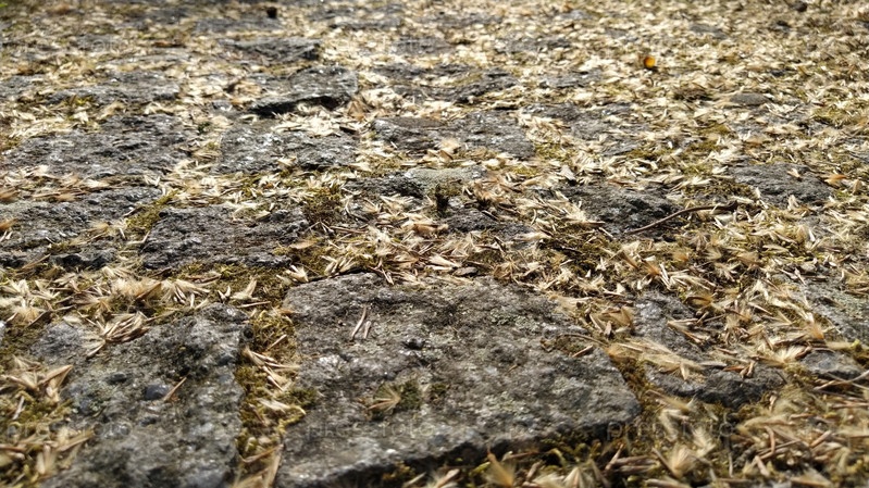 Куча больших гранитных булыжников или валунов, заросших зеленым мхом, лишайником и сочными садовыми растениями. Закрыть вид. Баннер. Коричневый теплые тона