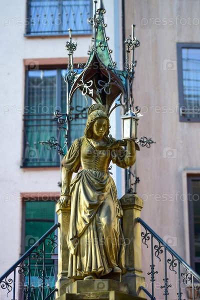 Фрагмент фонтана с фигурой девушки, держащей фонарь
