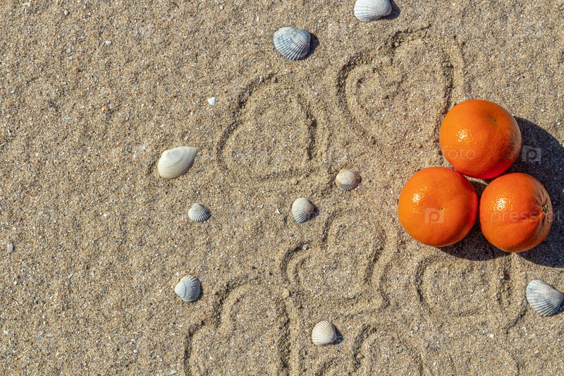Сердце нарисовано на песке. Фон пляжа. Вид сверху, фон для дизайна