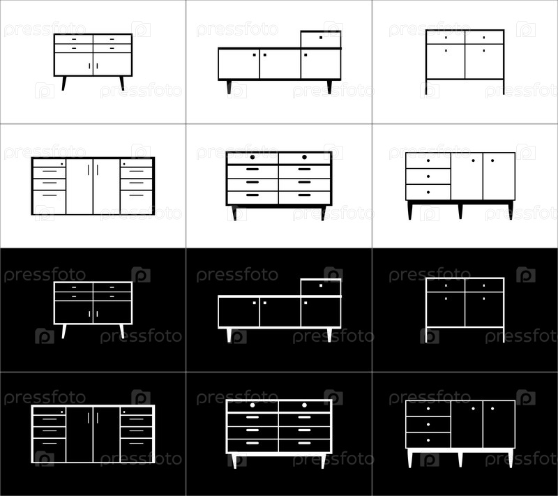 Мебельные иконки на черном и белом фоне. Тумбочки