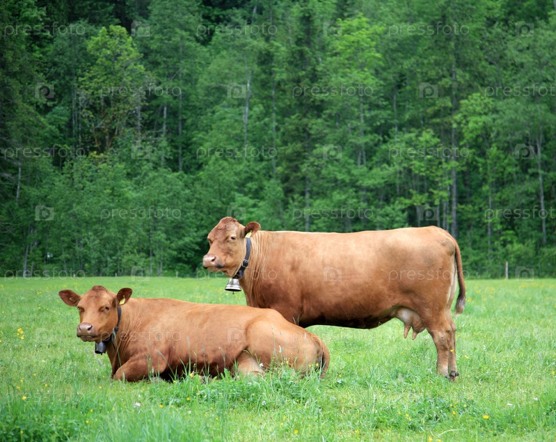 Коровы на зеленом лугу