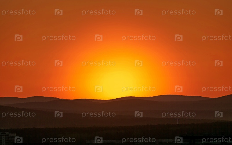Закат над холмами в ясную погоду