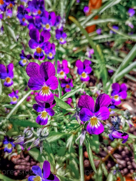 Цветы Анюта анютины глазки на фоне зеленой травы