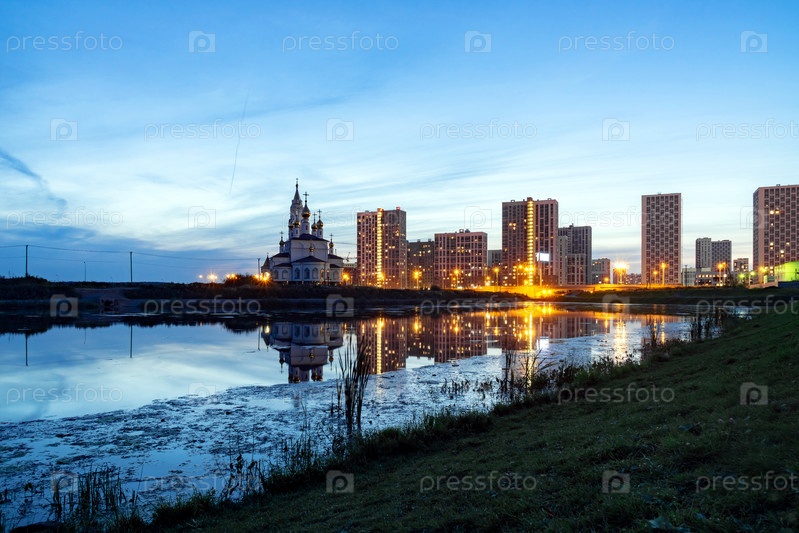 Церковь Божьих строителей на закате на фоне ясного неба 6